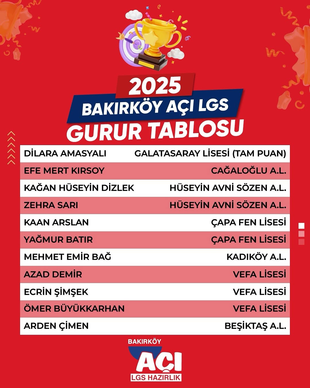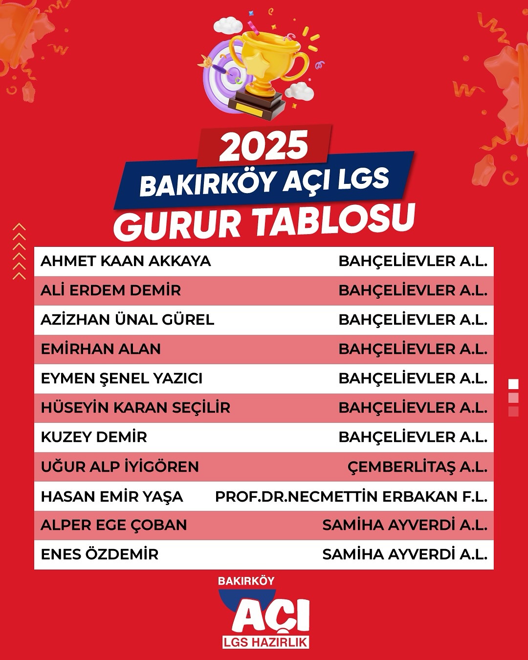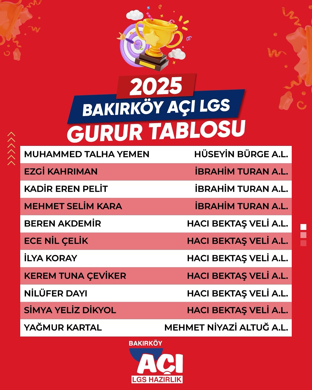 🏅BAKIRKÖY AÇI 2025 LGS GURUR TABLOMUZ🏅