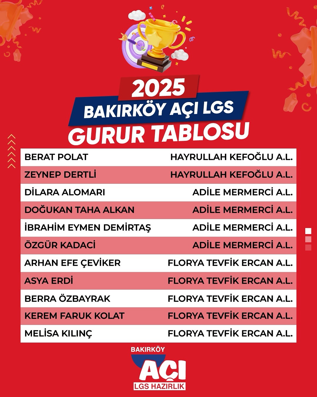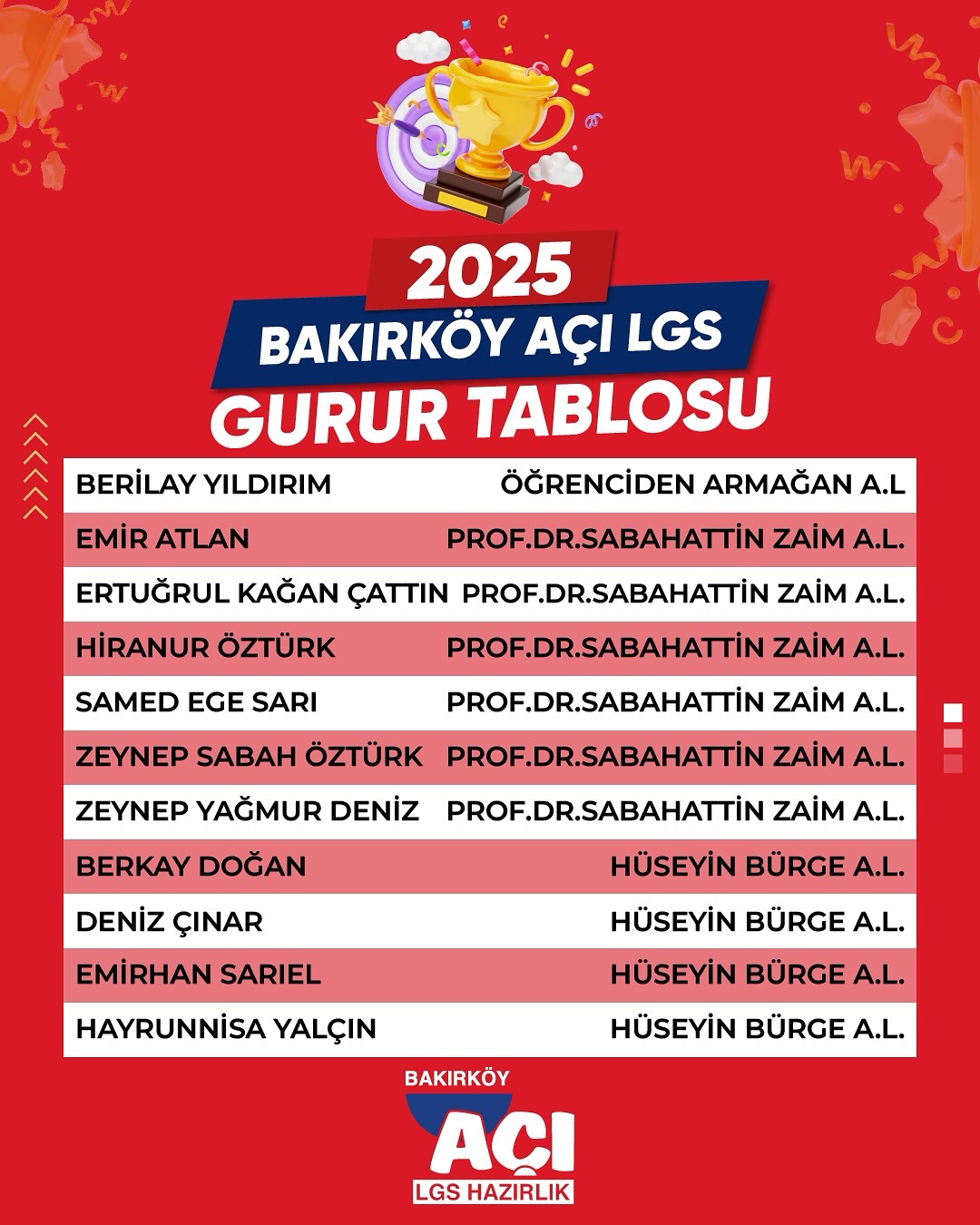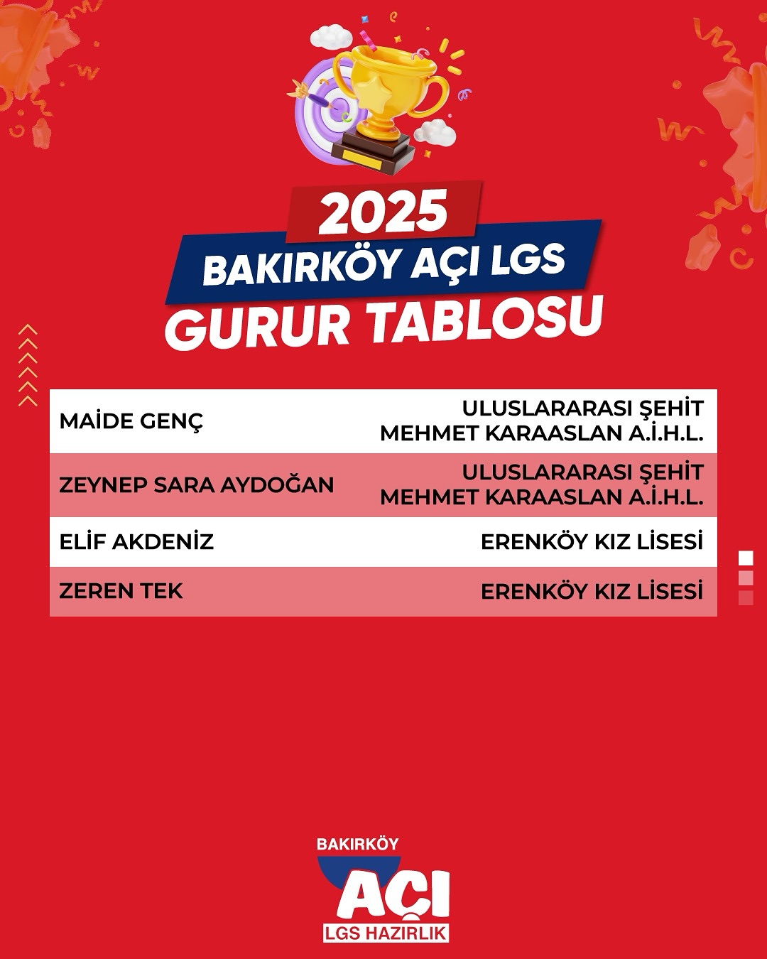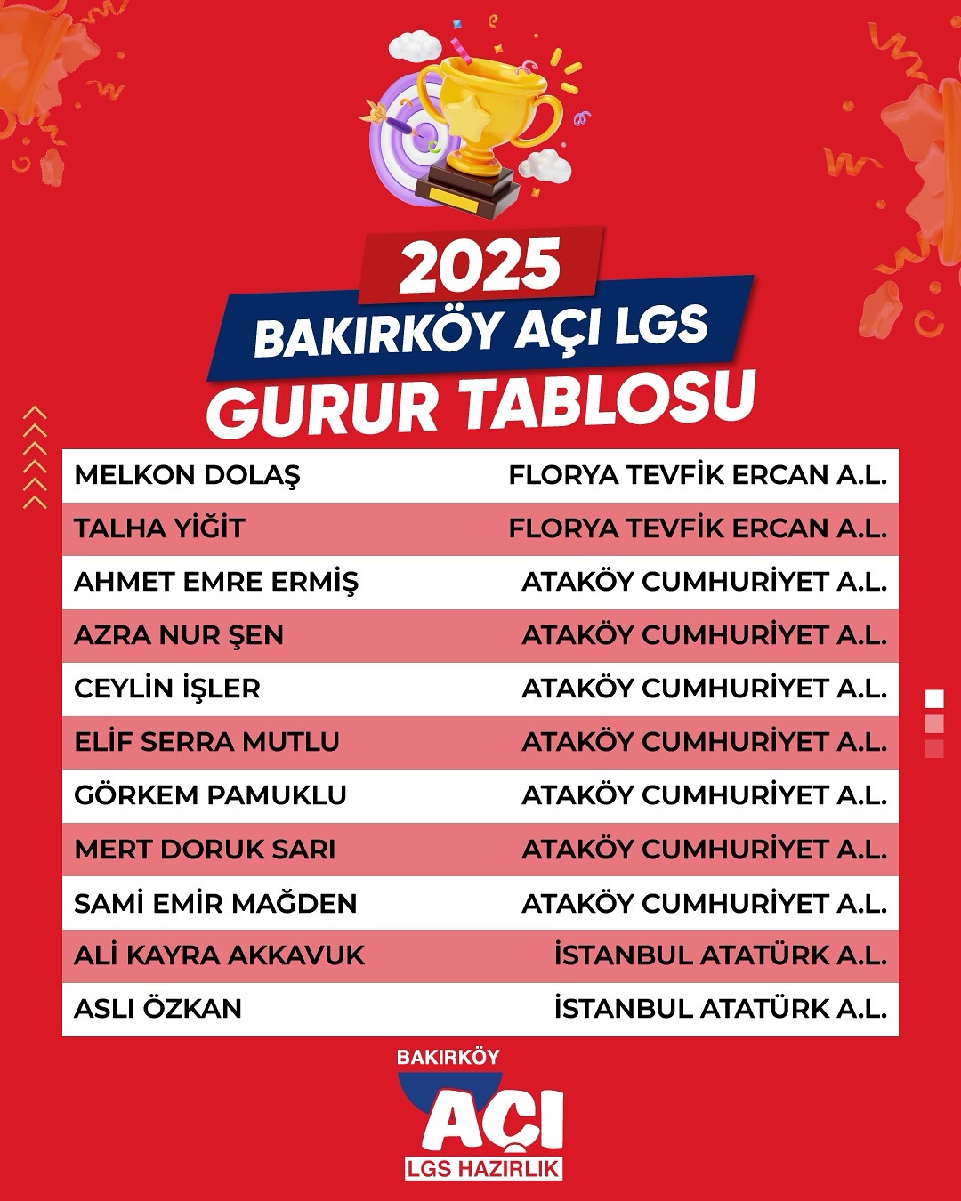 🏅BAKIRKÖY AÇI 2025 LGS GURUR TABLOMUZ🏅